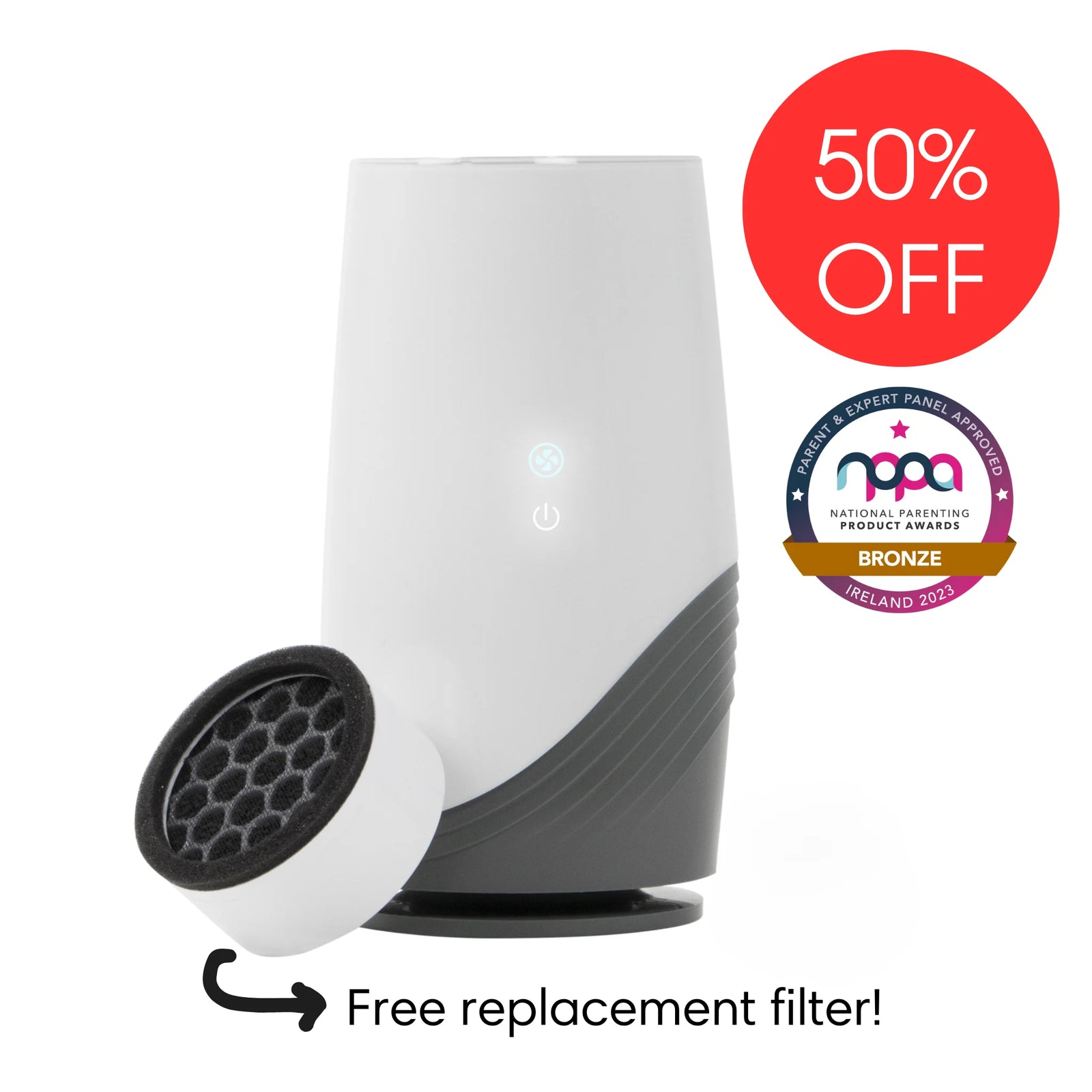 The BBluv Püre provides healthier air quality and a comfortable environment for the whole family. Our advanced air purifier uses certified HEPA+ filters with activated carbon and ionising technology that removes up to 99.7% of allergens and pollutants. The use of a HEPA+ filter is particularly recommended for people with allergies.