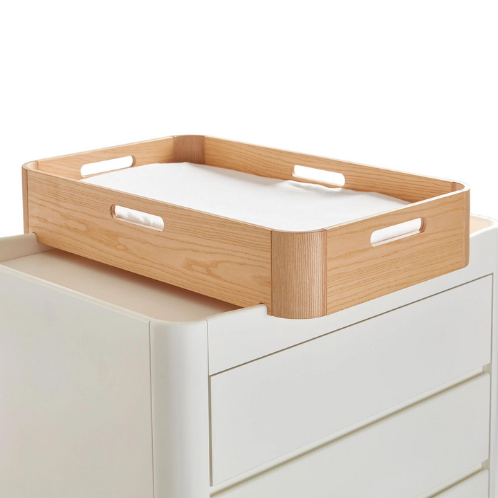 Elevate your nursery with the contemporary elegance of the Gaia Serena Dresser, echoing the soft contours of the Serena Cot Bed. Crafted from premium natural wood with aluminum feet, it offers ample storage with fully extendable drawers. Designed to complement any room, it's a timeless addition to your home. Compatible with the Hera Changing Station for added convenience (sold separately).