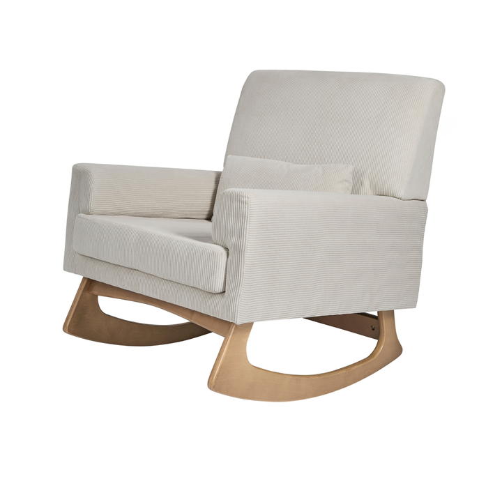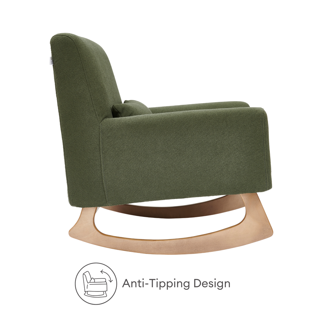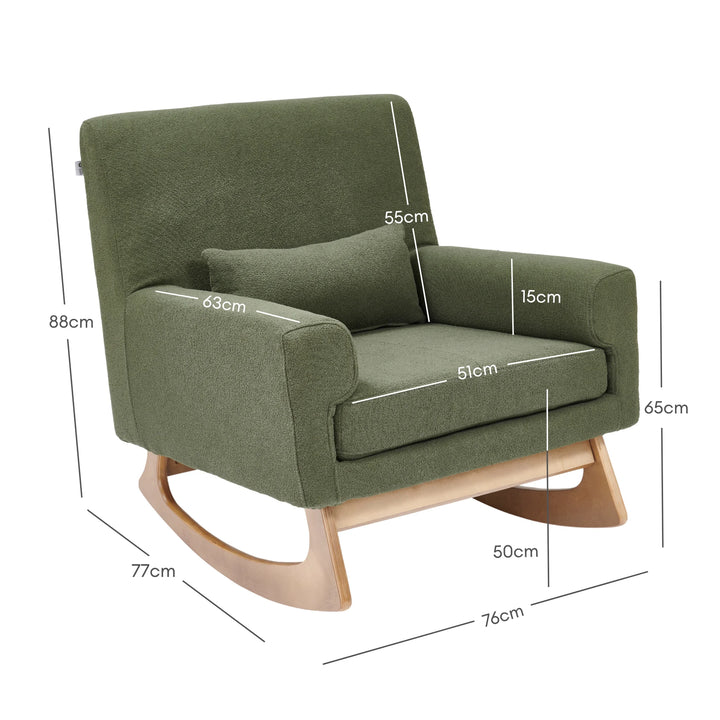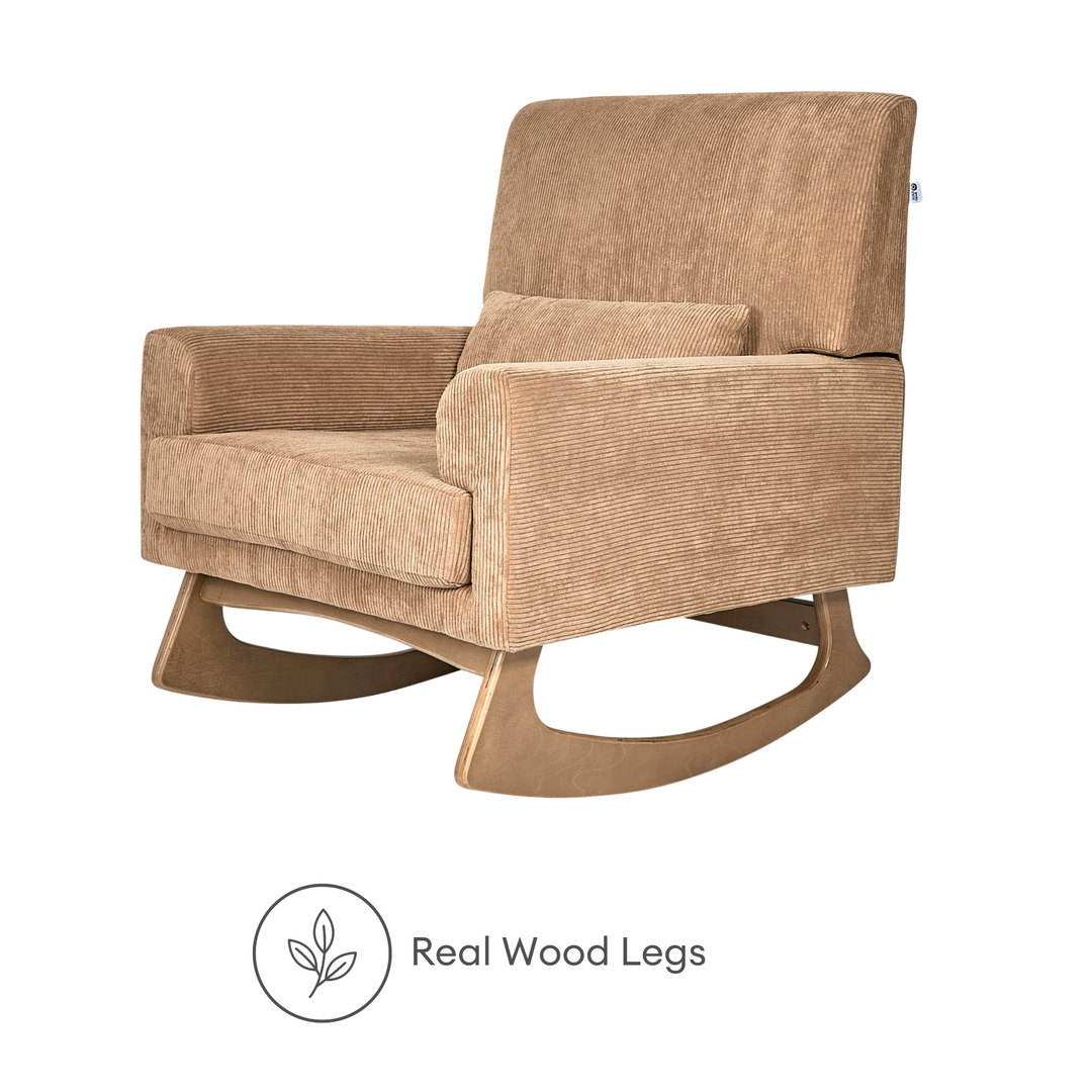 - Beautiful styling combined with ultimate comfort. Featuring natural wood contoured legs for a smooth rocking motion
