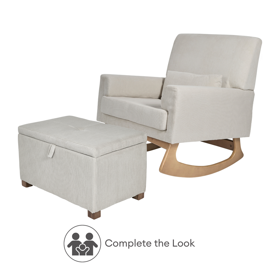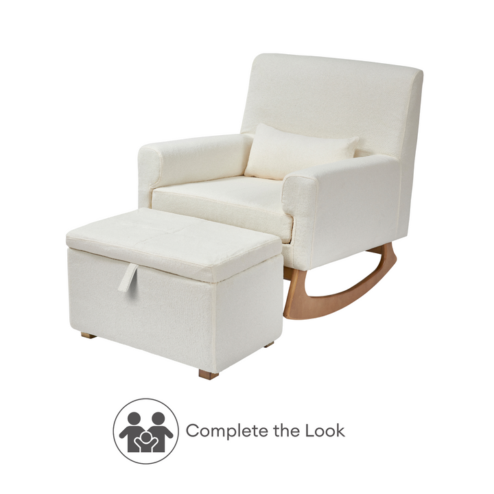 The Serena Rocking Chair blends timeless design with luxurious comfort, making it the perfect addition to your nursery or living space. Available in three premium fabric options, each with its own unique charm: