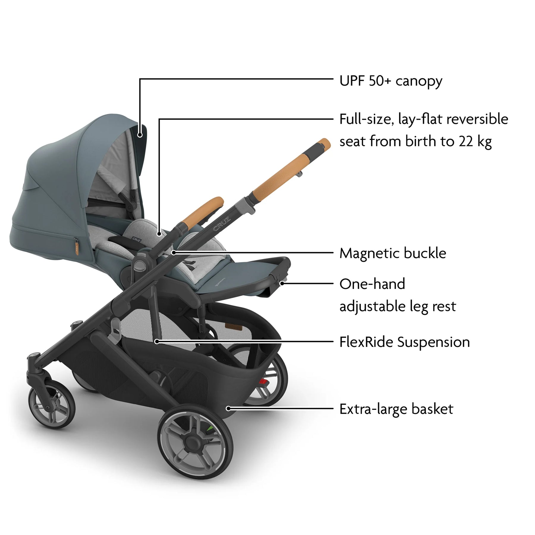 The Cruz V3 combines a sleek, streamlined design with versatile functionality, offering effortless manoeuvrability from newborns to toddlers. The perfect solution for families seeking a single, full-size stroller that’s smooth and easy to use, without weighing you down.