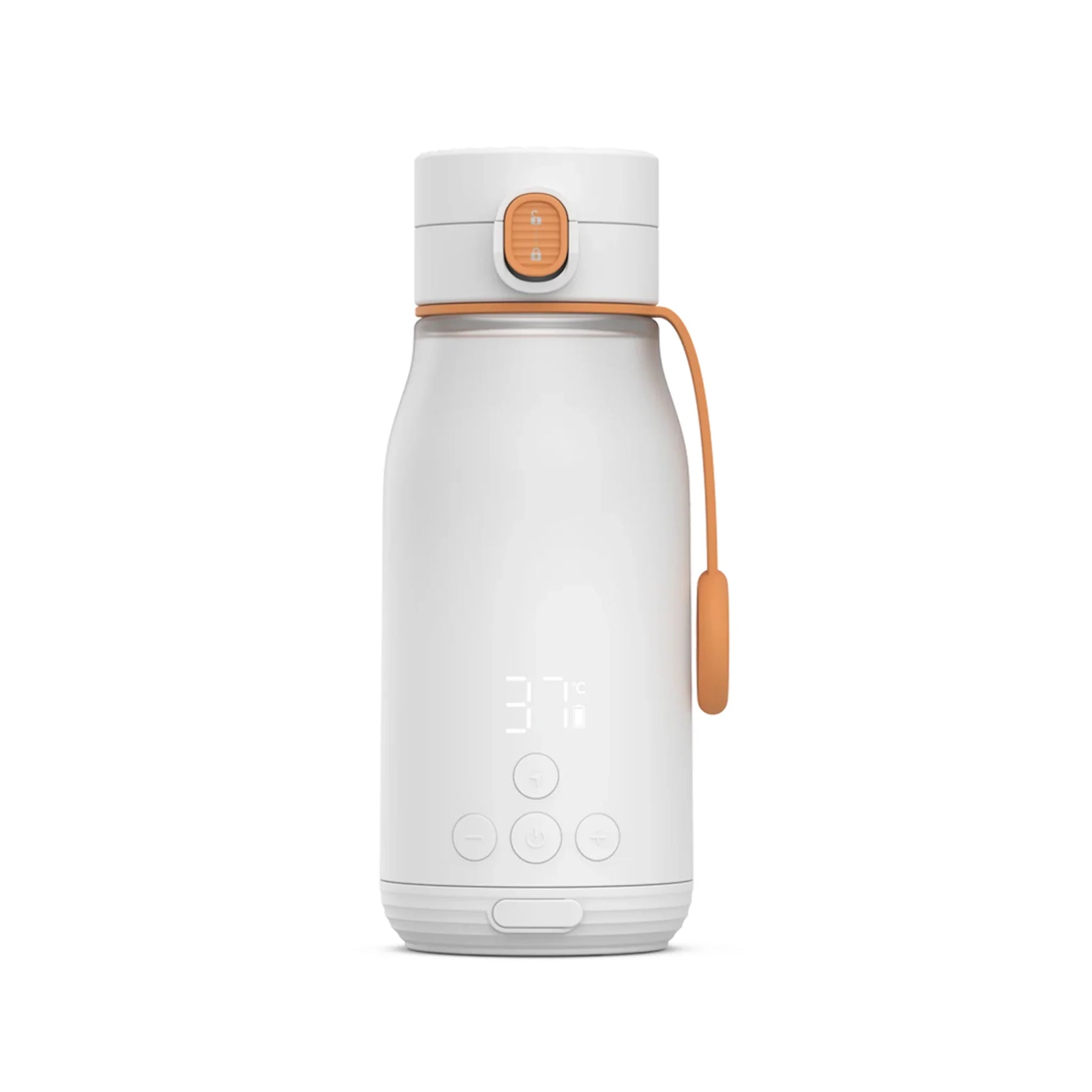 Bottle warming with a tactile surface coating to enhance grip and removable silicone carry strap for easy handling for parents who live on-the-go.