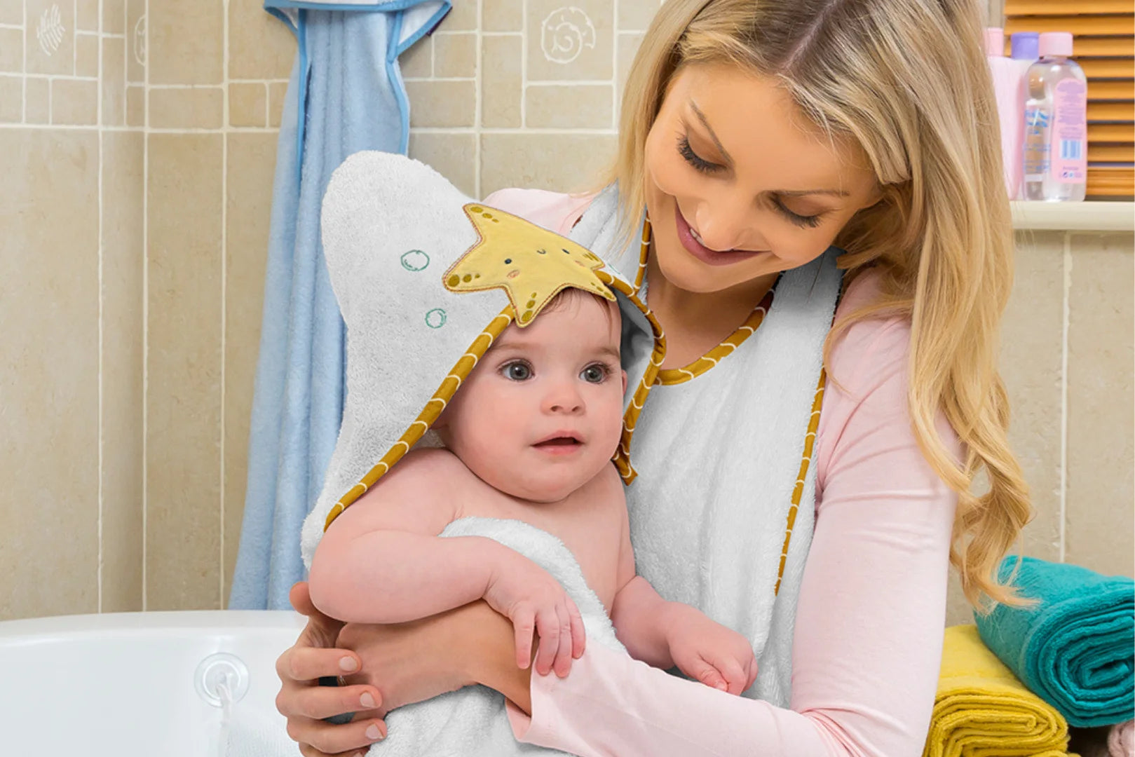Wrap your little one in comfort with the ClevaMama Bamboo Apron Baby Bath Towel. Designed to keep you dry while making bath time safe, warm, and stress-free.