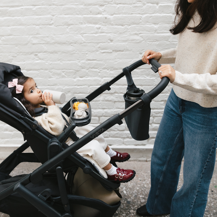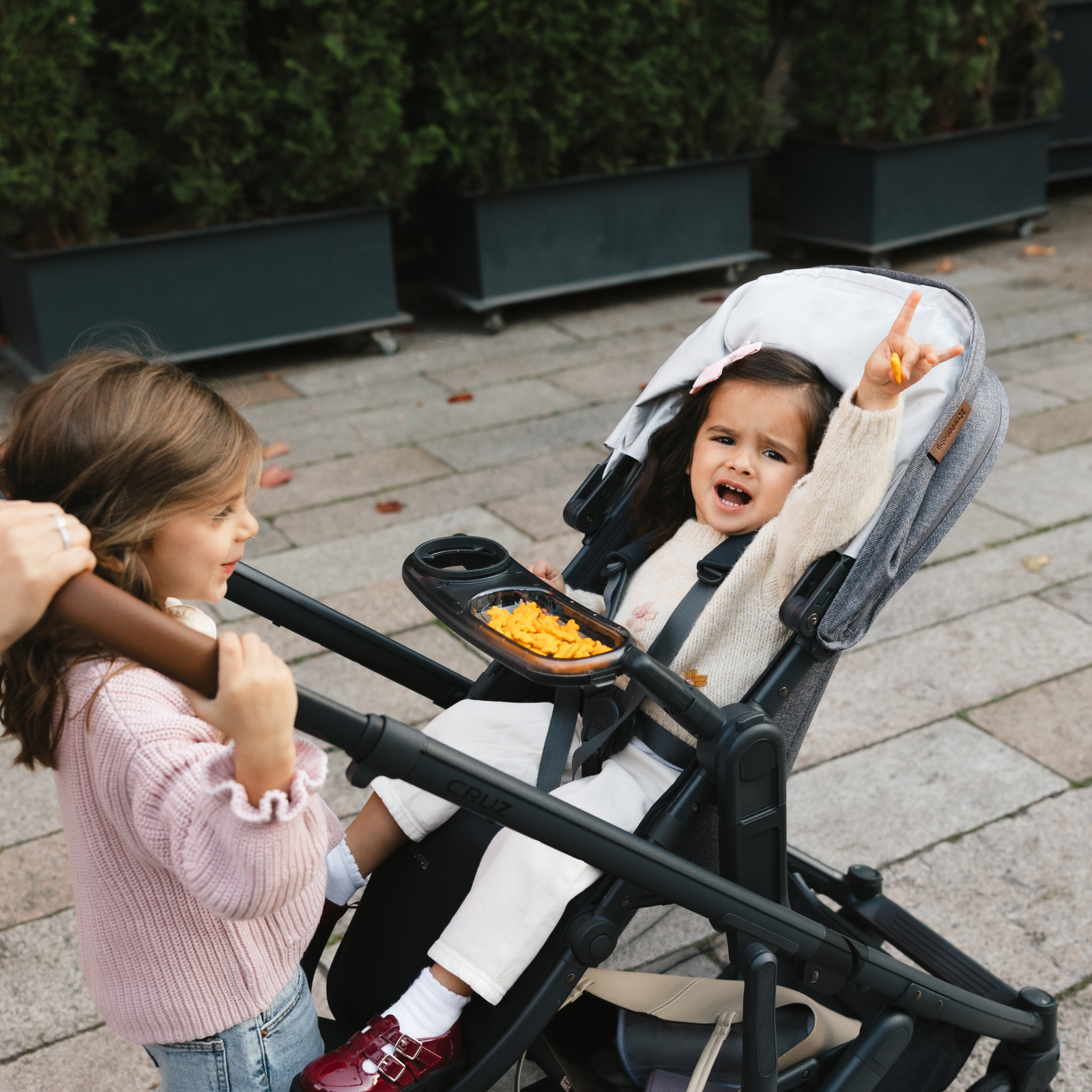 Enhance your UPPAbaby Vista or Cruz stroller with the Snack Tray. This tray offers a convenient snacking surface with a formed cup holder and a recessed bowl, perfect for little hands. It's BPA-free, dishwasher safe, and folds with the stroller. Keep your toddler satisfied on the go with this must-have accessory.